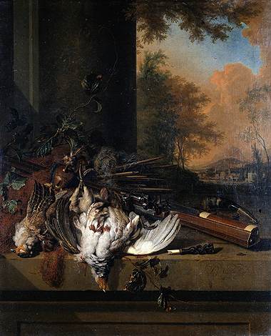 Dirk Valkenburg 1675 Amsterdam 1721 Amsterdam Jagdstilleben, 1703 Öl auf Leinwand 99,3 x 82 cm bez. r.u. auf der Steinplatte: D. Valkenburg, 1703 Inv.-Nr. 1590 |