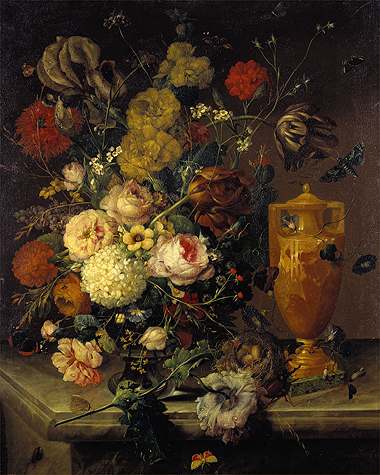 Johann Baptist Drechsler 1756 Wien 1811 Wien Blumenstilleben mit Blumenstrauß und Alabastervase, 1805 Öl auf Kupfer 80,5 x 64,5 cm bez. r.u.: Joh. Drechsler. f. 1805. Inv.-Nr. 1705 |